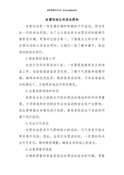 / 【七哥公文】2024年:冰雪运动公共安全须知+更多免费公文+VX:QiGeGongWen2024