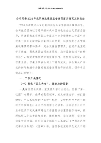 【七哥公文】2024年:公司纪委2024年党风廉政建设监督责任落实情况工作总结+更多免费公文+VX:QiGeGongWen2024