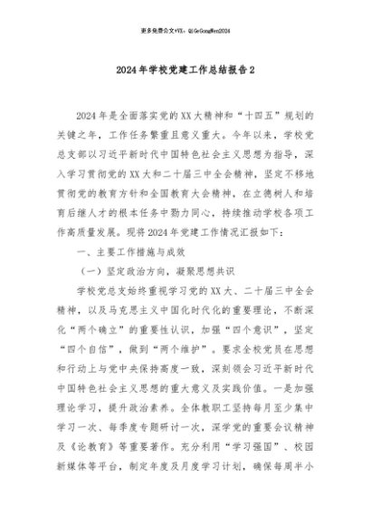 / 【七哥公文】2024年:2024年学校党建工作总结报告2+更多免费公文+VX:QiGeGongWen2024