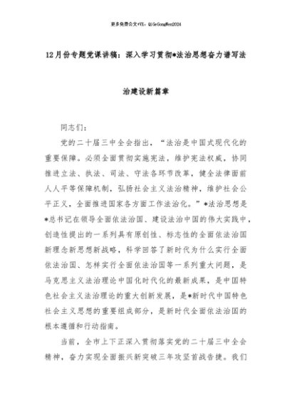 【七哥公文】2024年:12月份专题党课讲稿:深入学习贯彻总书记法治思想奋力谱写法治建设新篇章+更多免费公文+VX:QiGeGongWen2024