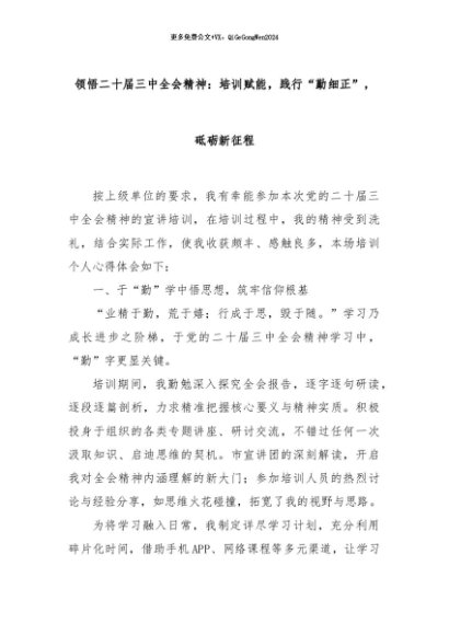 【七哥公文】2024年:领悟二十届三中全会精神:培训赋能,践行“勤细正”,砥砺新征程+更多免费公文+VX:QiGeGongWen2024