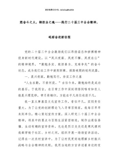 【七哥公文】2024年:燃奋斗之火,铸担当之魂——践行二十届三中全会精神,砥砺奋进新征程+更多免费公文+VX:QiGeGongWen2024