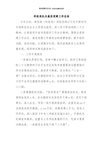 / 【七哥公文】2024年:科技局机关基层党建工作总结+更多免费公文+VX:QiGeGongWen2024
