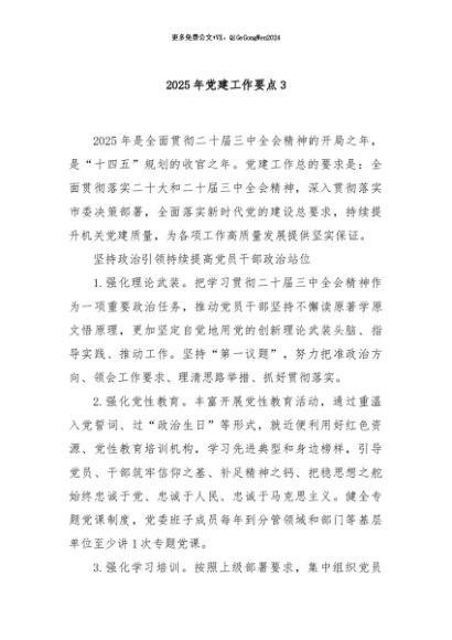 / 【七哥公文】2024年:2025年党建工作要点3 (1)+更多免费公文+VX:QiGeGongWen2024