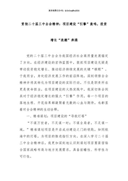 【七哥公文】2024年:贯彻二十届三中全会精神:项目建设“引擎”轰鸣,投资增长“浪潮”奔涌+更多免费公文+VX:QiGeGongWen2024
