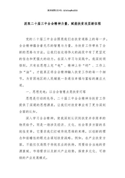 / 【七哥公文】2024年:汲取二十届三中全会精神力量,赋能扶贫攻坚新征程+更多免费公文+VX:QiGeGongWen2024