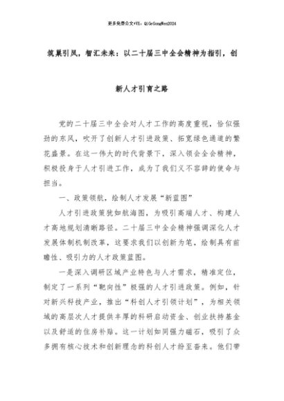【七哥公文】2024年:筑巢引凤,智汇未来:以二十届三中全会精神为指引,创新人才引育之路+更多免费公文+VX:QiGeGongWen2024