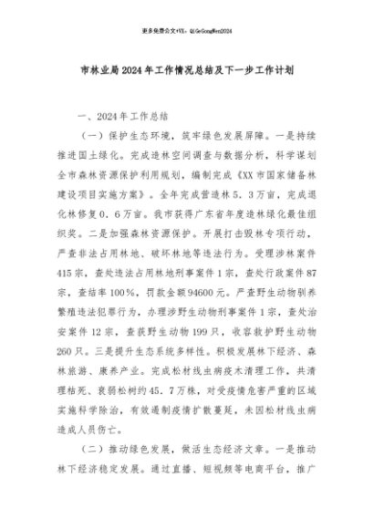 / 【七哥公文】2024年:市林业局2024年工作情况总结及下一步工作计划+更多免费公文+VX:QiGeGongWen2024