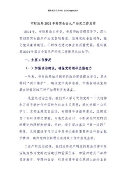 / 【七哥公文】2024年:市财政局2024年落实全面从严治党工作总结+更多免费公文+VX:QiGeGongWen2024