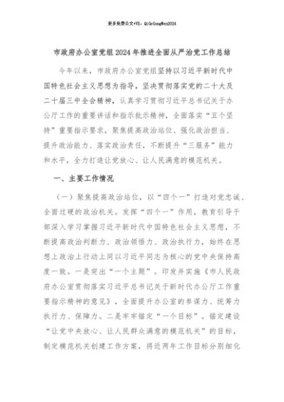 【七哥公文】2024年:市政府办公室党组2024年推进全面从严治党工作总结+更多免费公文+VX:QiGeGongWen2024