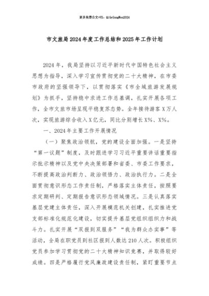/ 【七哥公文】2024年:市文旅局2024年度工作总结和2025年工作计划+更多免费公文+VX:QiGeGongWen2024