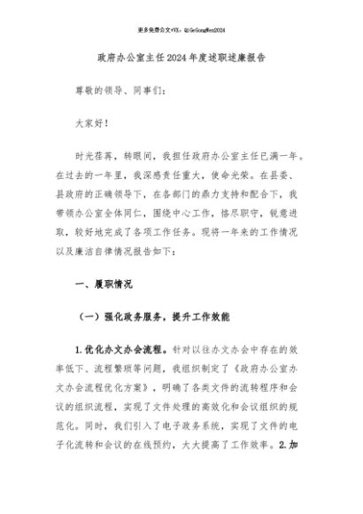 / 【七哥公文】2024年:政府办公室主任2024年度述职述廉报告+更多免费公文+VX:QiGeGongWen2024