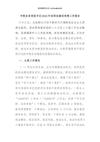 / 【七哥公文】2024年:市税务局党组书记2024年述职述廉述党建工作报告+更多免费公文+VX:QiGeGongWen2024