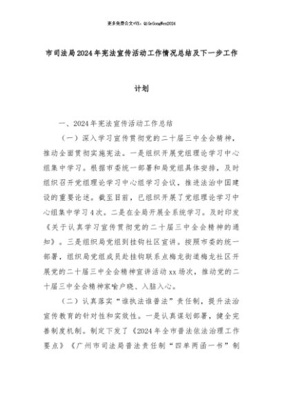 【七哥公文】2024年:市司法局2024年宪法宣传活动工作情况总结及下一步工作计划+更多免费公文+VX:QiGeGongWen2024