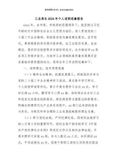 / 【七哥公文】2024年:工业局长2024年个人述职述廉报告+更多免费公文+VX:QiGeGongWen2024