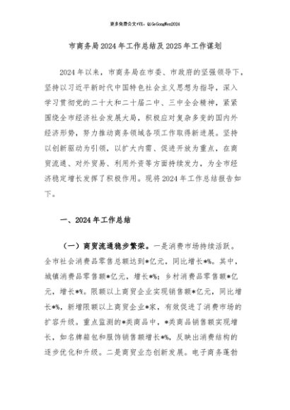 / 【七哥公文】2024年:市商务局2024年工作总结及2025年工作谋划+更多免费公文+VX:QiGeGongWen2024