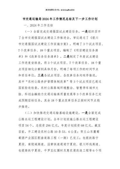 【七哥公文】2024年:市交通运输局2024年工作情况总结及下一步工作计划+更多免费公文+VX:QiGeGongWen2024