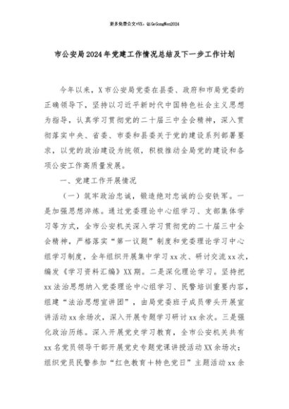 【七哥公文】2024年:市公安局2024年党建工作情况总结及下一步工作计划+更多免费公文+VX:QiGeGongWen2024