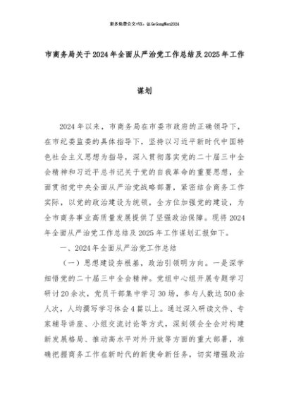 【七哥公文】2024年:市商务局关于2024年全面从严治党工作总结及2025年工作谋划+更多免费公文+VX:QiGeGongWen2024