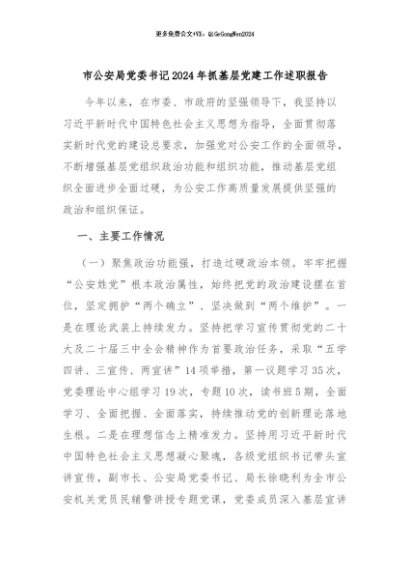 / 【七哥公文】2024年:市公安局党委书记2024年抓基层党建工作述职报告+更多免费公文+VX:QiGeGongWen2024