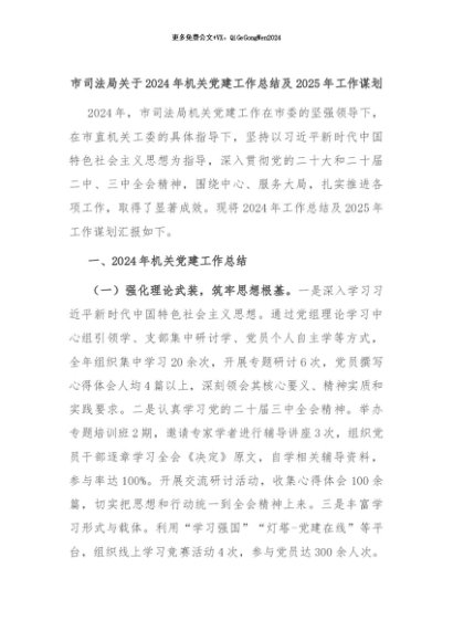 【七哥公文】2024年:市司法局关于2024年机关党建工作总结及2025年工作谋划+更多免费公文+VX:QiGeGongWen2024