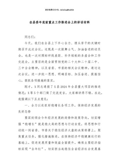 / 【七哥公文】2024年:在县委年底前重点工作推进会上的讲话材料+更多免费公文+VX:QiGeGongWen2024