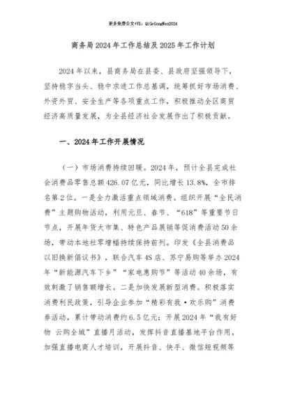 / 【七哥公文】2024年:商务局2024年工作总结及2025年工作计划+更多免费公文+VX:QiGeGongWen2024