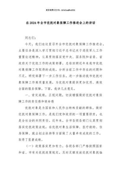 / 【七哥公文】2024年:在2024年全市优抚对象保障工作推进会上的讲话+更多免费公文+VX:QiGeGongWen2024