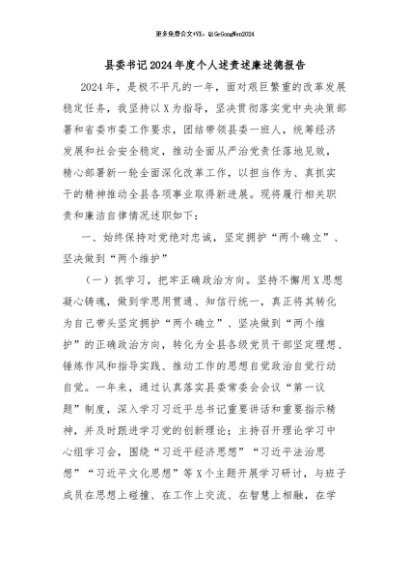 / 【七哥公文】2024年:县委书记2024年度个人述责述廉述德报告+更多免费公文+VX:QiGeGongWen2024