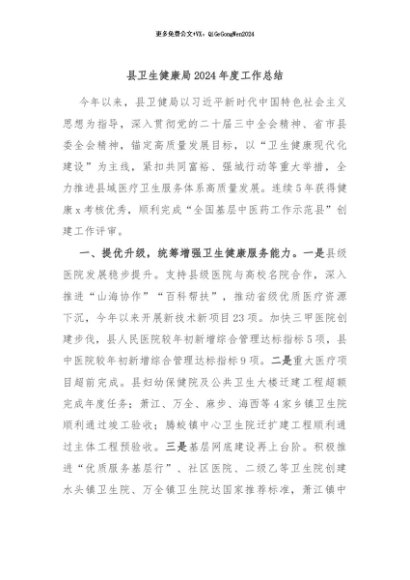 / 【七哥公文】2024年:县卫生健康局2024年度工作总结+更多免费公文+VX:QiGeGongWen2024