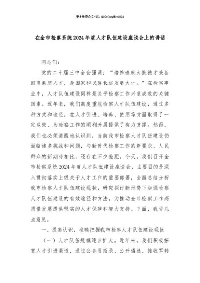 【七哥公文】2024年:在全市检察系统2024年度人才队伍建设座谈会上的讲话+更多免费公文+VX:QiGeGongWen2024