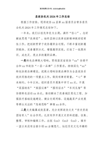 / 【七哥公文】2024年:县政协机关2024年工作总结+更多免费公文+VX:QiGeGongWen2024