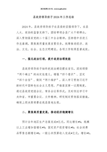 / 【七哥公文】2024年:县政府领导班子2024年工作总结+更多免费公文+VX:QiGeGongWen2024