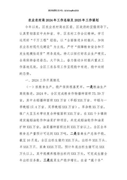 / 【七哥公文】2024年:农业农村局2024年工作总结及2025年工作谋划+更多免费公文+VX:QiGeGongWen2024