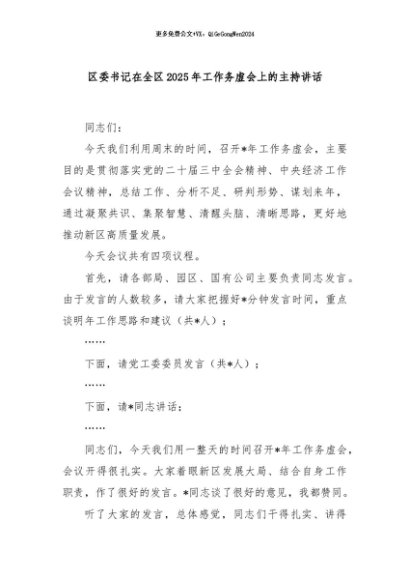 / 【七哥公文】2024年:区委书记在全区2025年工作务虚会上的主持讲话+更多免费公文+VX:QiGeGongWen2024
