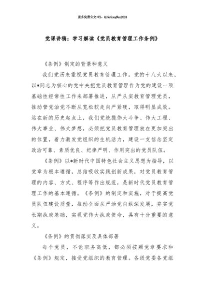 / 【七哥公文】2024年:党课讲稿:学习解读《党员教育管理工作条例》+更多免费公文+VX:QiGeGongWen2024