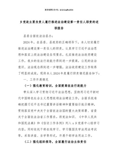【七哥公文】2024年:乡党政主要负责人履行推进法治建设第一责任人职责的述职报告+更多免费公文+VX:QiGeGongWen2024