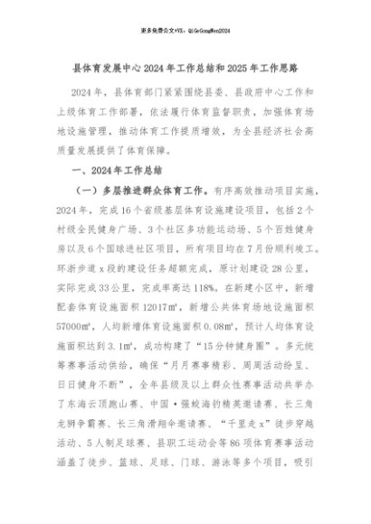 【七哥公文】2024年:县体育发展中心2024年工作总结和2025年工作思路+更多免费公文+VX:QiGeGongWen2024