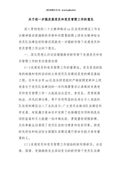/ 【七哥公文】2024年:关于进一步强发展党员和党员管理工作的意见+更多免费公文+VX:QiGeGongWen2024