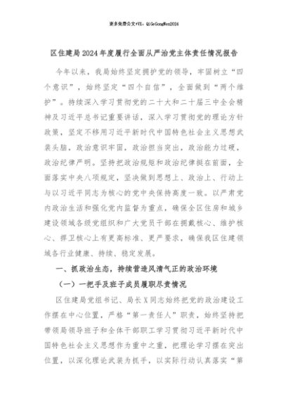 【七哥公文】2024年:区住建局2024年度履行全面从严治党主体责任情况报告+更多免费公文+VX:QiGeGongWen2024