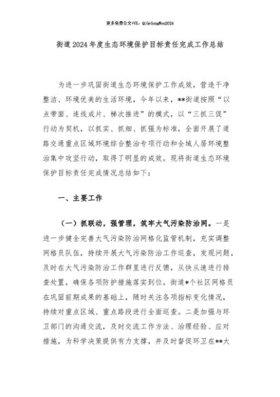 / 【七哥公文】2024年:街道2024年度生态环境保护目标责任完成工作总结+更多免费公文+VX:QiGeGongWen2024