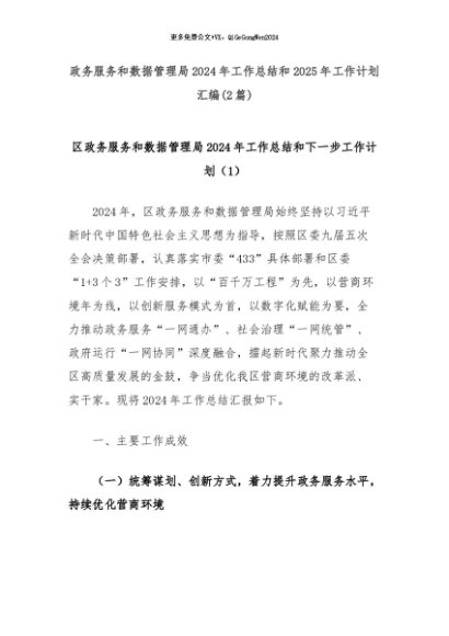【七哥公文】2024年:(2篇)政务服务和数据管理局2024年工作总结和2025年工作计划汇编+更多免费公文+VX:QiGeGongWen2024