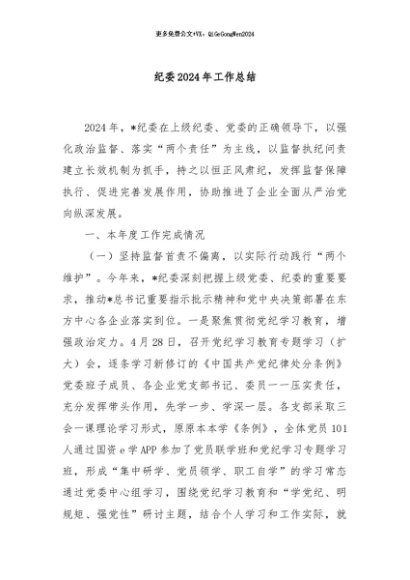 / 【七哥公文】2024年:纪委2024年工作总结+更多免费公文+VX:QiGeGongWen2024