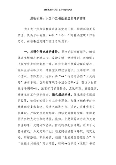/ 【七哥公文】2024年:经验材料:以五个三领航基层党建新篇章+更多免费公文+VX:QiGeGongWen2024