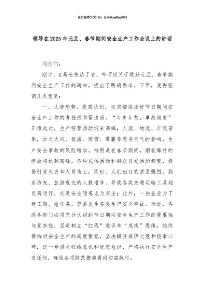 【七哥公文】2024年:领导在2025年元旦、春节期间安全生产工作会议上的讲话+更多免费公文+VX:QiGeGongWen2024