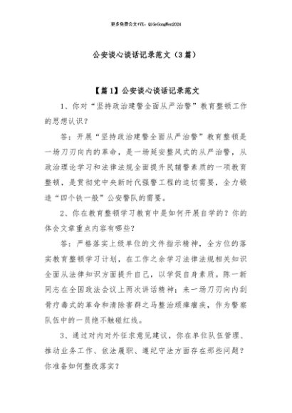 / 【七哥公文】2024年:(3篇)公安谈心谈话记录范文+更多免费公文+VX:QiGeGongWen2024