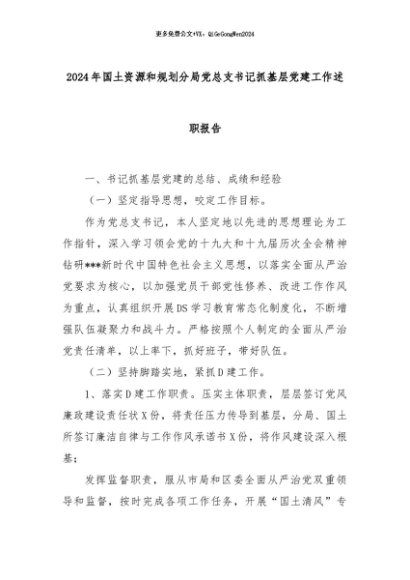 【七哥公文】2024年:2024年国土资源和规划分局党总支书记抓基层党建工作述职报告+更多免费公文+VX:QiGeGongWen2024