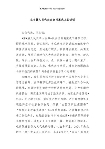/ 【七哥公文】2024年:在乡镇人民代表大会闭幕式上的讲话+更多免费公文+VX:QiGeGongWen2024