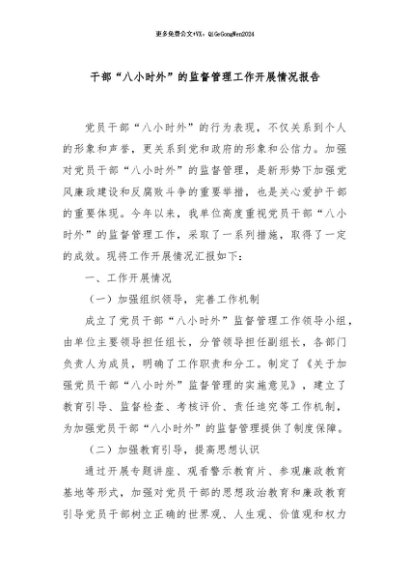 / 【七哥公文】2024年:干部“八小时外”的监督管理工作开展情况报告+更多免费公文+VX:QiGeGongWen2024