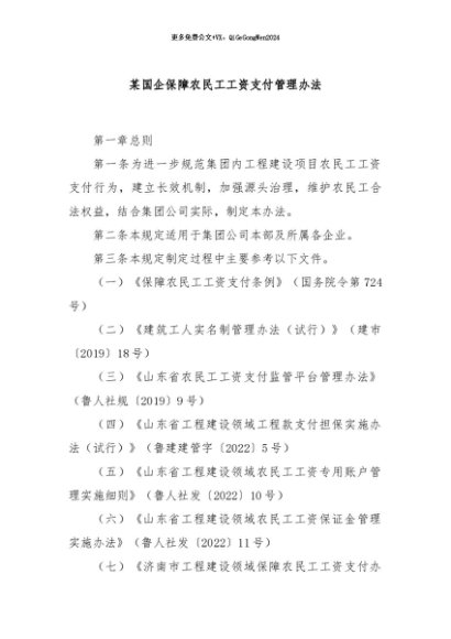 / 【七哥公文】2024年:某国企保障农民工工资支付管理办法+更多免费公文+VX:QiGeGongWen2024